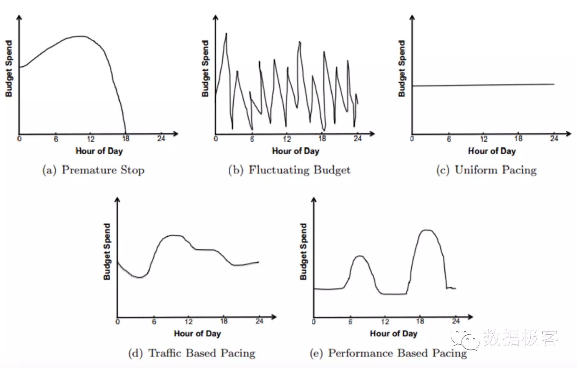 Pacing的做法还有很多,著名的DSP公司Turn在他们的文献中对此作了总结如下图,除了均衡pacing之外,还有根据流量以及效果进行的pacing策略。