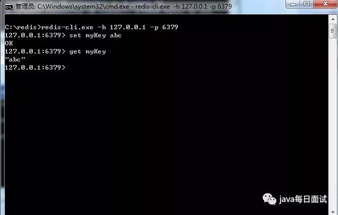 切换到redis目录下运行 redis-cli.exe -h 127.0.0.1 -p 6379 。