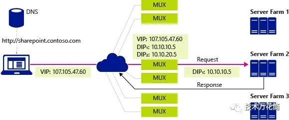 首先,什么是VIP?我们访问某个公网的域名,该域名会被公网DNS智能的根据地域能多种因素解析到某个IP上,其中该IP是负载均衡节点的VIP,互联网用户设备通过该VIP建立连接。这些VIP被定义在一组名为SLB Multiplexer (MUX)集群的节点上,这个MUX是集群化部署,由物理机、虚拟机甚至是容器组成。