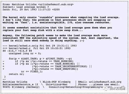 我给Matthias发了邮件去询问他,时隔24年之后,他对当初load average的修改是怎么看的。他居然在1小时内就给我回复了,让我开心了一天,他写道: