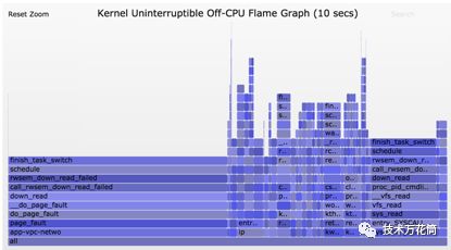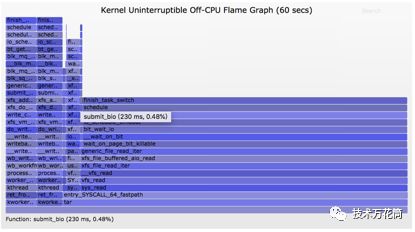 我也只针对不可中断态采集了一个off-CPU火焰图: