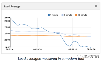 这三个数作为一个集合,对于你确定负载是上升还是下降来说很有用。当需要单个值时他们也很有用,比如作为云服务自动扩展的规则。但是如果脱离了其他的几个指标来获取更多信息就困难了,例如给出一个光杆值23-25,仅凭数字本身没有任何意义,除非知道了CPU个数或许能有点用,并且知道这个是CPU计密集型的负载任务。