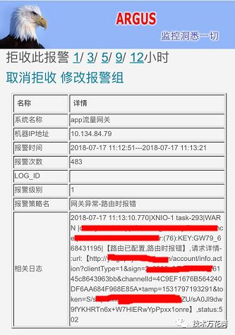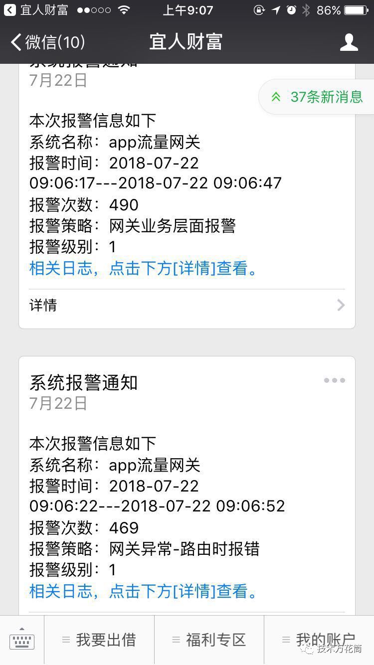 一周前,监控系统不间断的报警,提升有大规模访问超时的情况,自从上次架构升级后,我们将部分公共业务剥离至网关,所有的流量都过网关,所以在网关层面做了一层无死角的监控,对任何业务的业务、系统异常都能全部覆盖到。结合可伸缩的监控报警策略,可以实时的报警,从而快速介入。以下是报警: