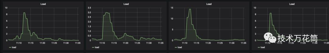 最近运营活动很多,带来的量很大,表现就是平台的日活突然提升,而且在产品的上线发售时间前后有一个很明显的尖峰,从系统的负载上来看: