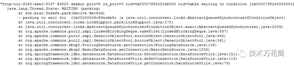线程数也是200个,不知道够不够,但是看了下状态,全部被阻塞住了: