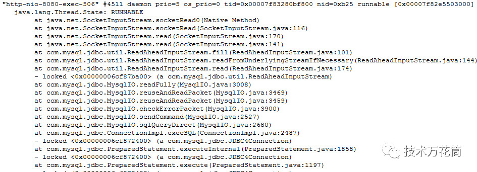 既然通过日志已经看不出什么,而且异步线程被阻塞,肯定有另外的原因,所以需要看一下线程的dump,就抓到了当时的现场(间隔多抓几个):