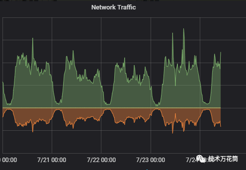 另外多看了一下这个服务的一些指标,发现了一个有趣的现象,它的网络情况如下,居然是请求大于响应的。