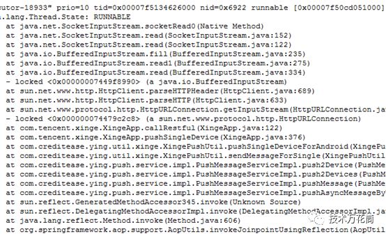 此时没有着急重启,立刻dump了一下线程堆栈,发现堆栈没有问题,线程状态都正常,而日志里大量的报出来这个异常:
