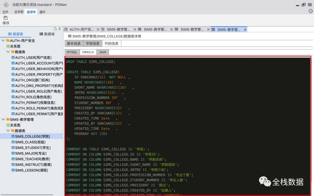 生成数据库脚本以及提供导出功能。