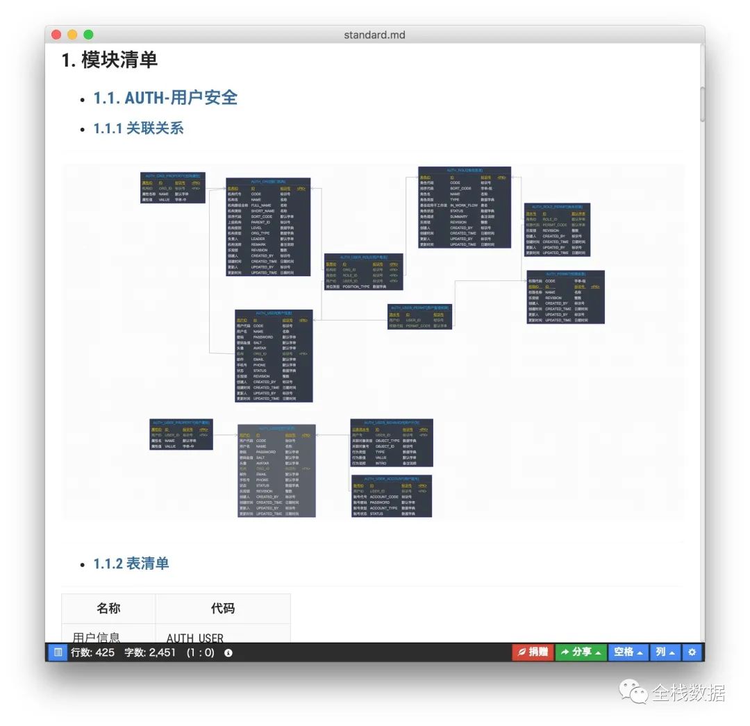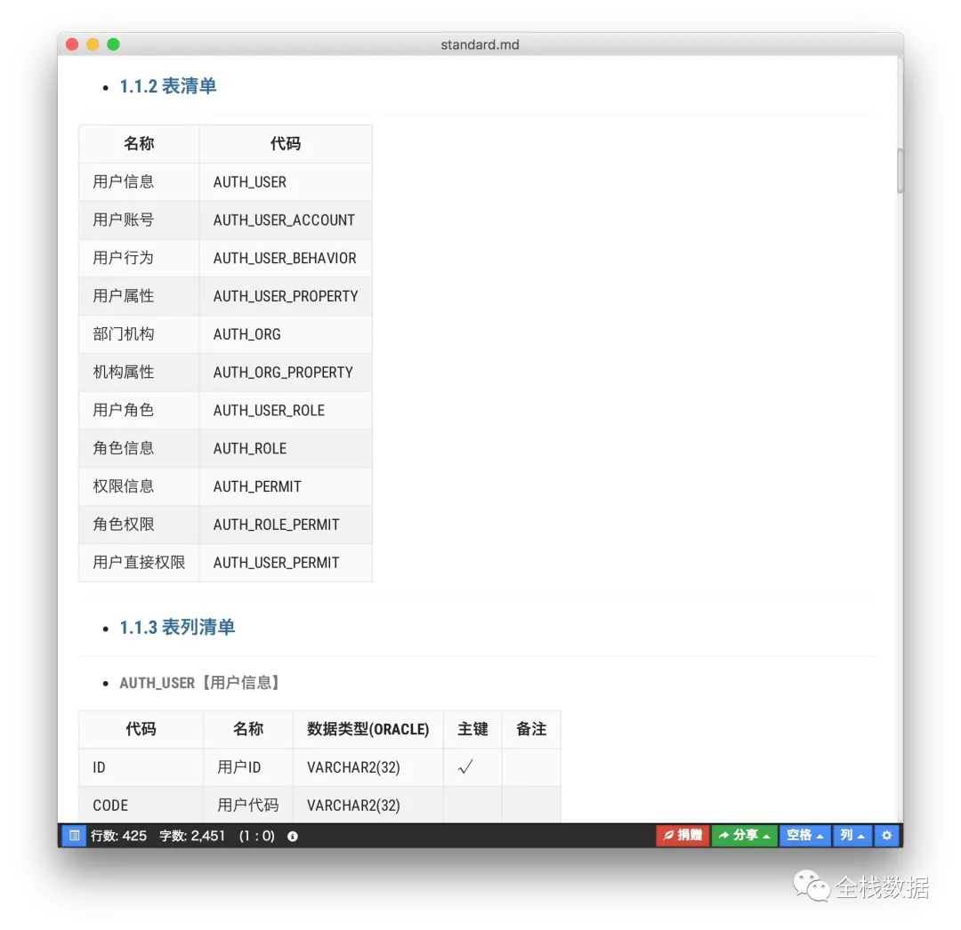 一键自动生成数据表结构文档,方便客户交付。