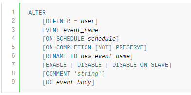 https://dev.mysql.com/doc/refman/8.0/en/alter-event.html