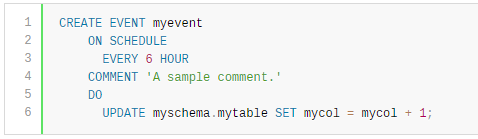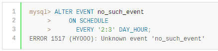 ALTER EVENT语句可以更改现有事件的一个或多个特征,而无需删除并重新创建它。DEFINER、ON SCHEDULE、ON COMPLETION、COMMENT、ENABLE/DISABLE和DO子句的语法与CREATE EVENT使用时的语法完全相同。只要用户拥有数据库的EVENT权限,就可以更改在数据库上定义的事件。当用户成功执行ALTER EVENT语句时,该用户将成为事件的定义者。在以下每个示例中,假设名为myevent的事件定义如下:下面的语句将myevent的调度从立即开始的每六小时一次更改为每十二小时一次,从运行该语句起四小时开始:可以在一个语句中更改事件的多个特征。此示例将myevent执行的SQL语句更改为从mytable中删除所有记录的语句;它还更改了事件的调度,使其在运行ALTER EVENT语句一天后执行一次。在ALTER EVENT语句中只为要更改的那些特性指定选项;省略的选项保留其现有值。这包括CREATE EVENT的任何默认值,例如ENABLE。要禁用myevent,请使用以下ALTER EVENT语句:ON SCHEDULE子句可以使用包含内置MySQL函数和用户变量的表达式来获取它包含的任何timestamp或interval。不能在此类表达式中使用存储过程或用户定义函数,也不能使用任何表引用;但是,可以使用SELECT FROM DUAL。对于ALTER EVENT和CREATE EVENT语句都是这样。在这种情况下,引用存储过程、用户定义函数和表会引发错误。尽管ALTER EVENT语句在其DO子句中包含另一个ALTER EVENT语句看起来是可行的,但是当服务器尝试执行结果的调度事件时,执行失败并报错。要重命名事件,请使用ALTER EVENT语句的RENAME To子句。此语句将事件myevent重命名为yourevent:还可以使用ALTER EVENT ... RENAME TO ... db_name.event_name 语句将事件移动到其他数据库,如下所示:要执行前一条语句,执行该语句的用户必须对olddb和newdb数据库具有EVENT特权。DISABLE ON SLAVE用于复制从属服务器,而不是ENABLE或DISABLE,来指示在主服务器上创建并复制到从属服务器上的事件,该事件不会在从属服务器上执行。通常,DISABLE ON SLAVE会根据需要自动设置;但是,在某些情况下,您可能希望或需要手动更改它。官方文档地址: