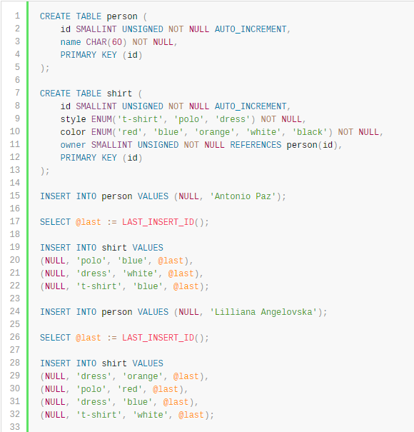 上述语句并没有为自增列分配值,MySQL会自动分配值,也可以显式地将0分配给自增列,系统也会自动分配值,除非启用了NO_AUTO_VALUE_ON_ZERO SQL模式。例如: