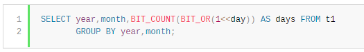 下面的示例演示如何使用位组函数计算用户每月访问网页的天数。