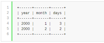 示例表包含了表示用户访问页面的年月日的值。要确定每月进行这些访问的天数,请使用以下查询: