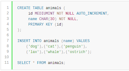 如果想指定自增值不是从1开始,请使用CREATE TABLE或ALTER TABLE设置该值,如下所示: