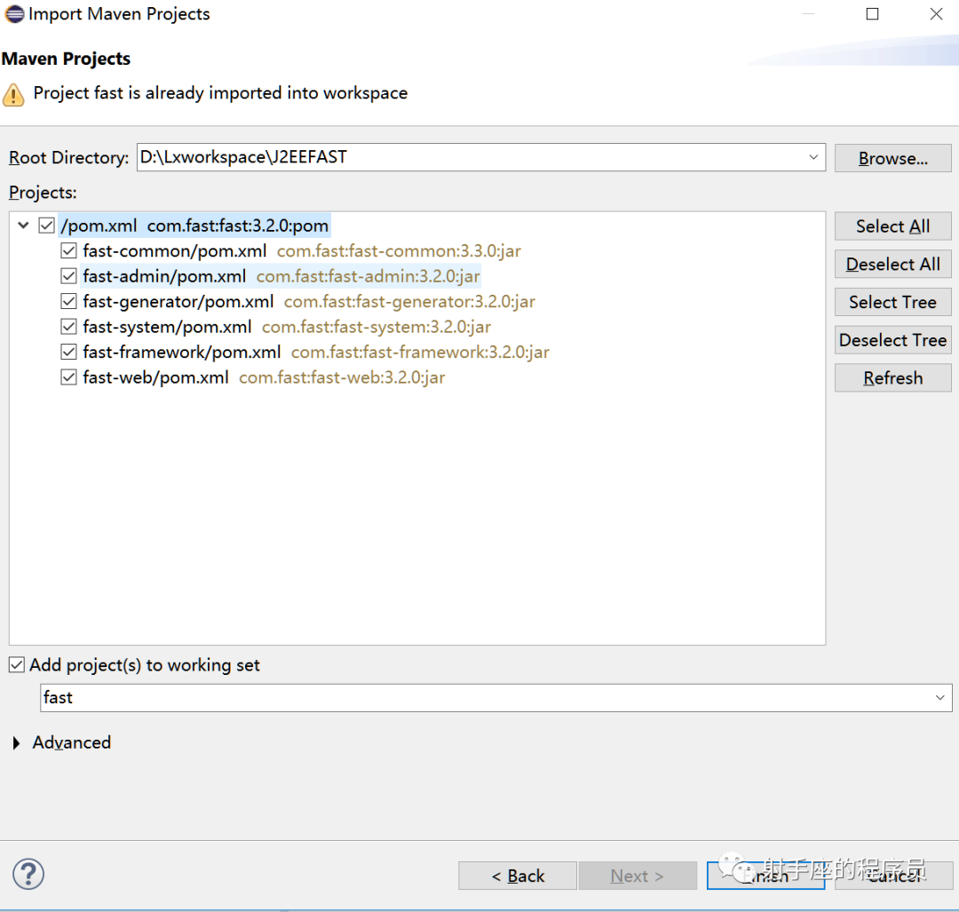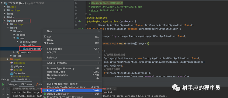 都配置好之后启动 FastApplication、找到admin 模块下FastApplication类 run启动项目。
