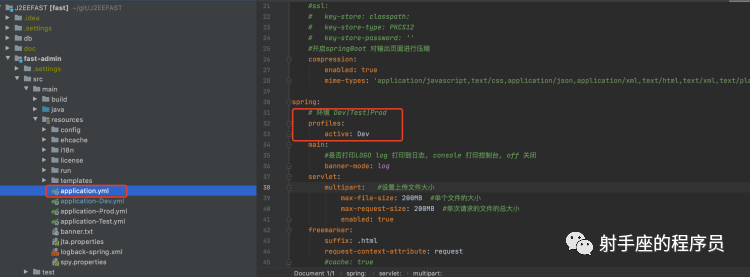 fast-admin resources资源目录下 application.yml 基本不用动 主要注意spring:profiles:active: Dev 是那个环境下