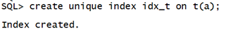 --创建唯一索引