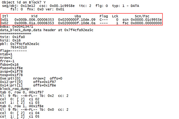 我们可以在对应的数据块上找到锁信息: