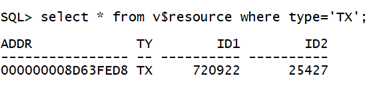 当有多个TX锁的时候,通过ID1,ID2可以判断哪些竞争的是同一个资源。资源标识符的构成<TYPE-ID1-ID2>