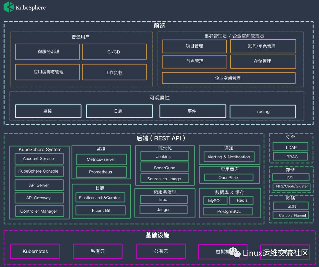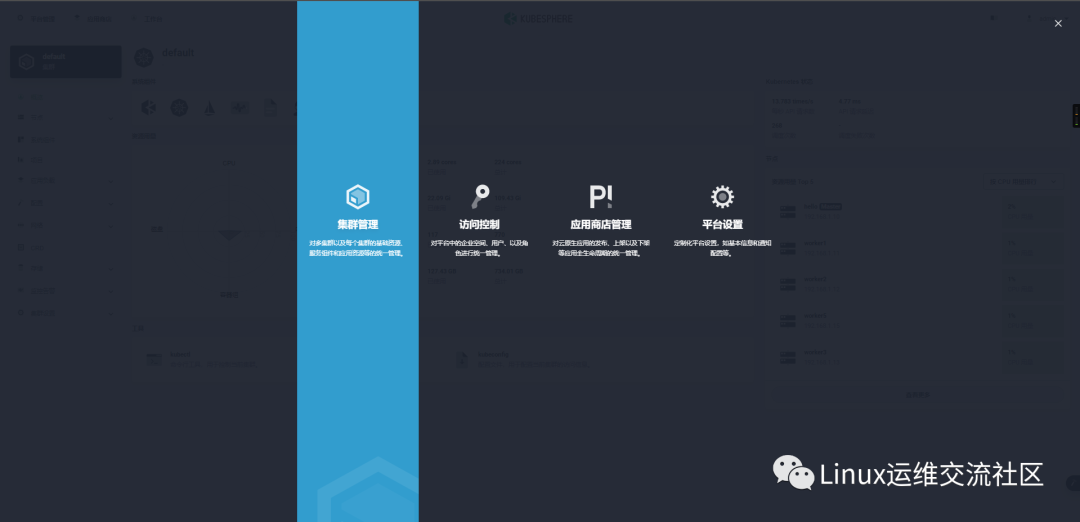 用户可以使用 KubeSphere Web 控制台查看和操作不同的资源。要在安装后启用可插拔组件,只需要在控制台中进行略微调整。对于那些习惯使用 Kubernetes 命令行工具 kubectl 的人来说,由于该工具已集成到控制台中,因此使用 KubeSphere 将毫无困难。