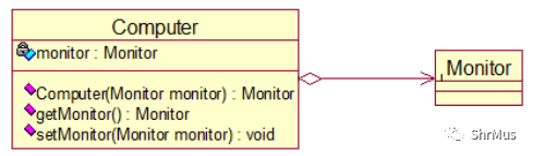 实现聚合关系时,成员对象通常用构造方法或setter方法被注入到整体对象中。对应的Java代码如下: