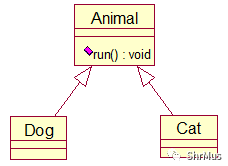 泛化关系就是继承关系,用于描述父类和子类之间的关系。在UML图中,泛化关系用带空心三角形的实线表示。首先要做的是提取两个事物的共同属性,行为,关系等,例如,猫和狗都属于动物,都能跑能跳。如图所示。