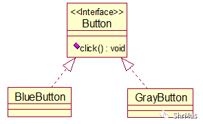 接口里的成员只有常量和抽象方法,在UML图中,接口和类的表示方式不一样,常见的有用<<interface>>标明,实现关系用带空心三角形的虚线表示。例如,页面中的不同按钮点击之后出现的结果。如图所示。