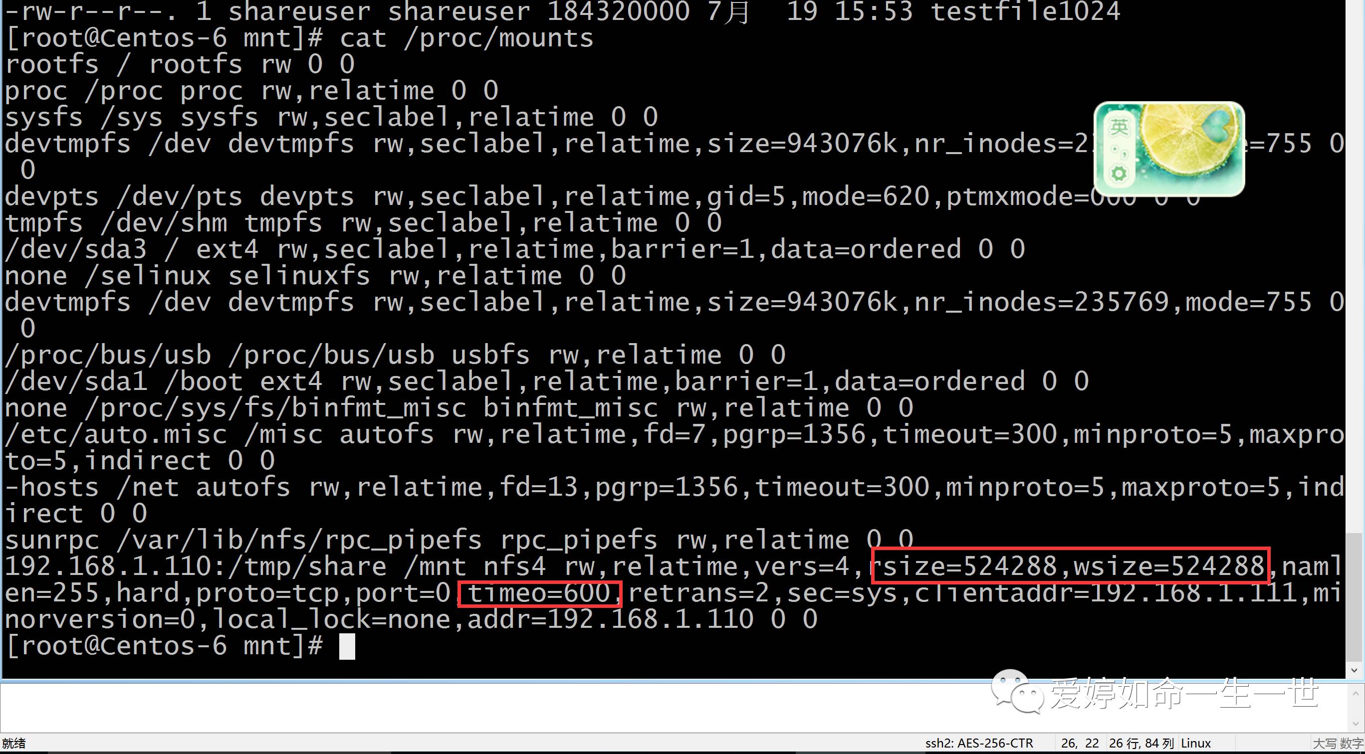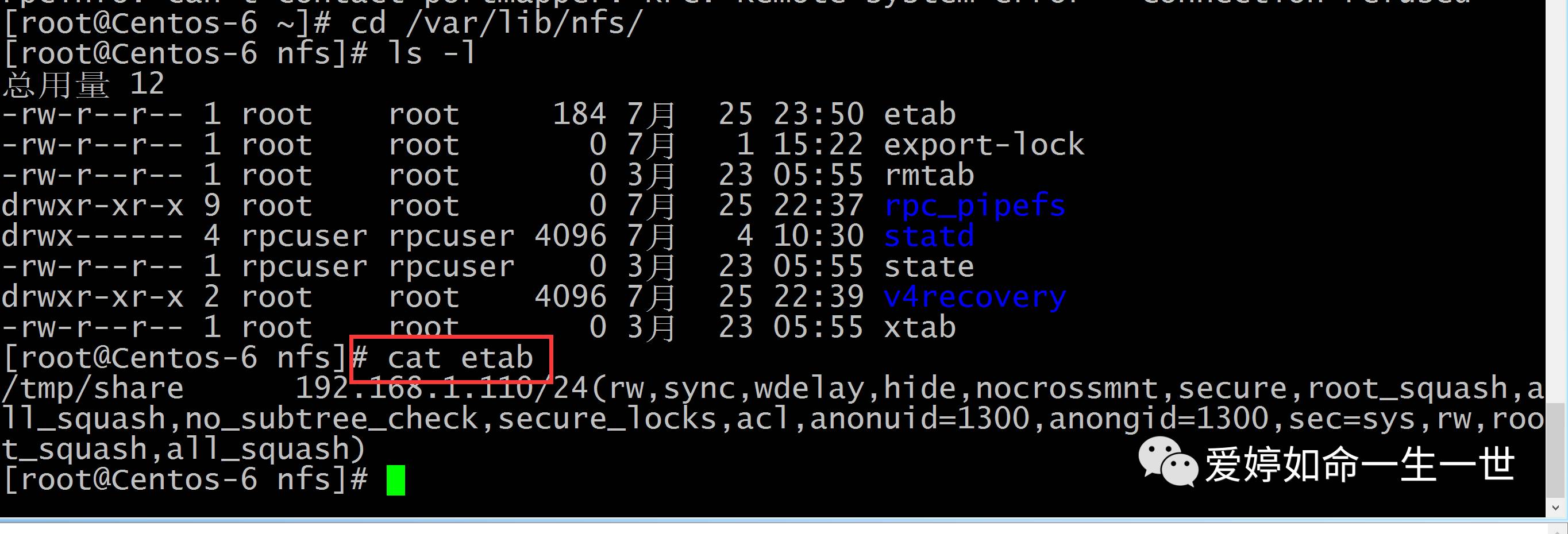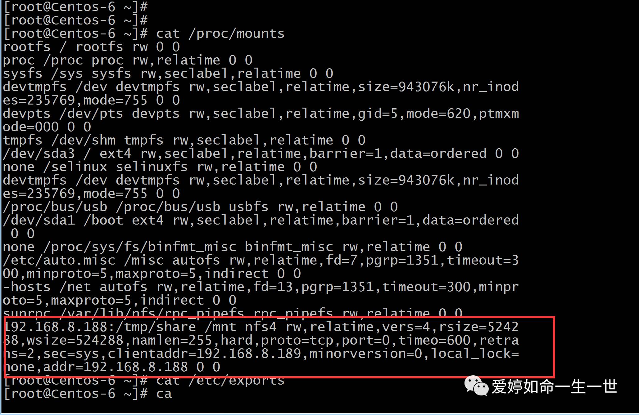 例如etab:我可以看到NFS的配置的当前的参数:(这样比在服务端上用mount -o 查看的更为简洁 )