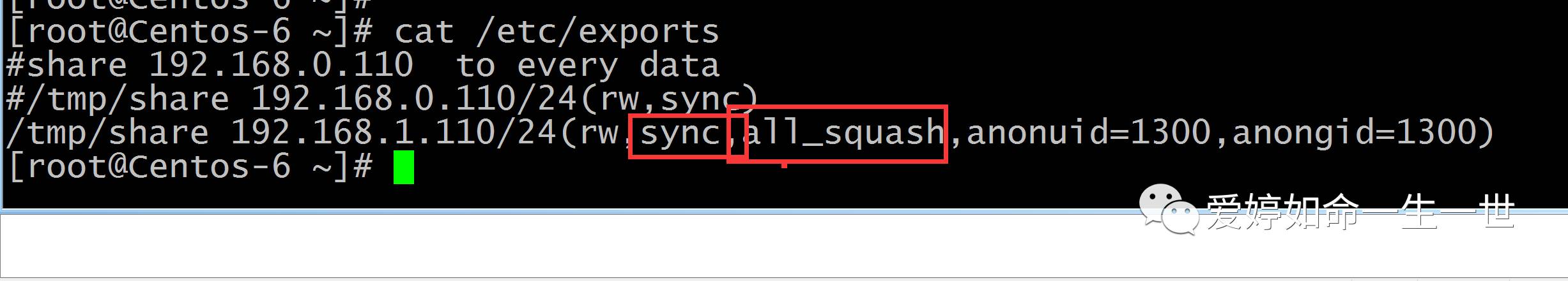 NFS服务器:all-squash,性能最优就增加async.图中async我就没有增加。