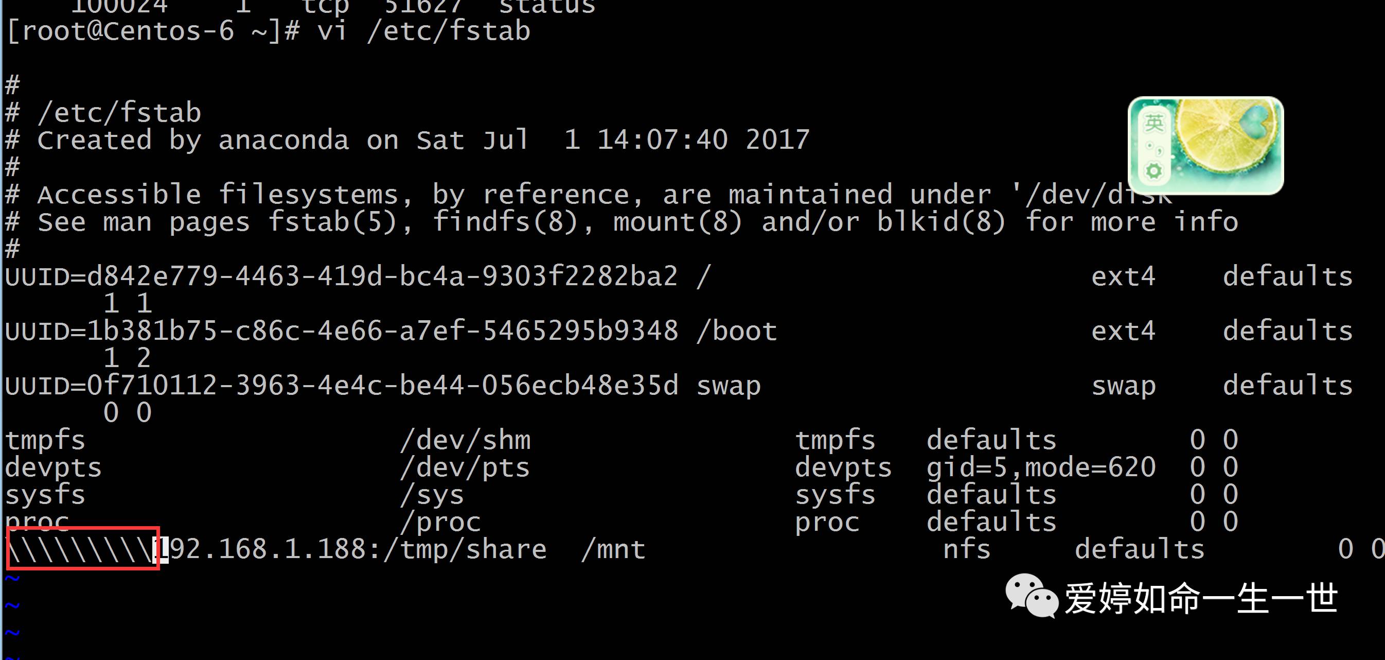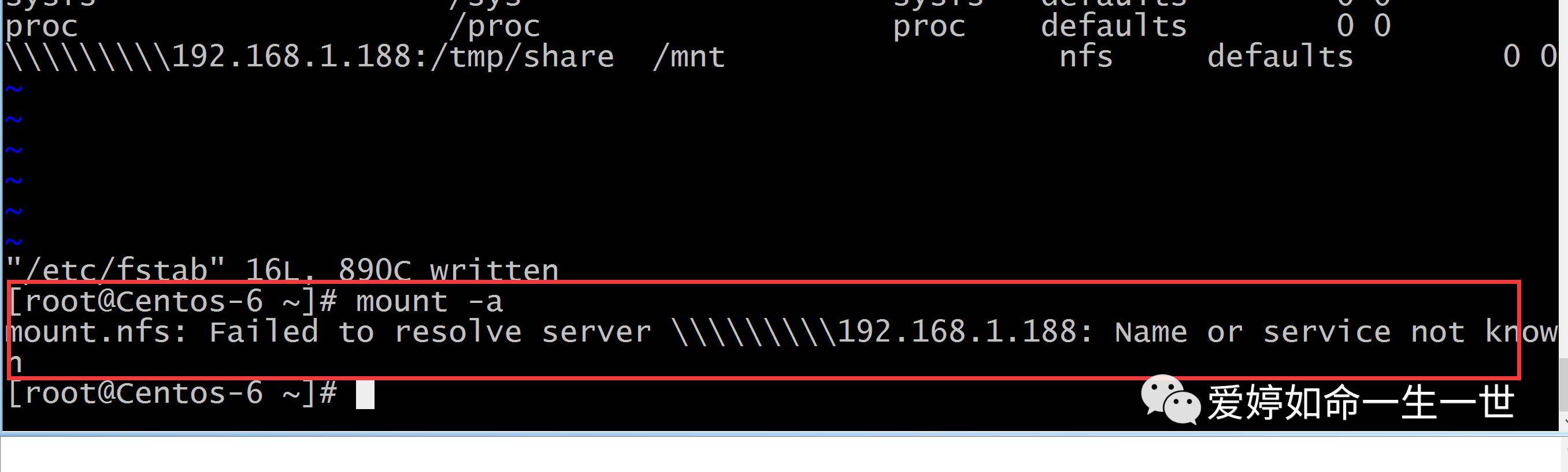 例如,我将客户端/etc/fstab开机自动挂载的配置文件里的写法格式给搞错