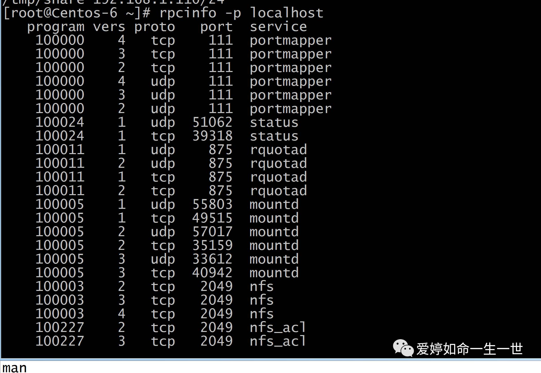 rpcinfo这个命令一般是用于查看端口命令rpc服务相关端口的命令: