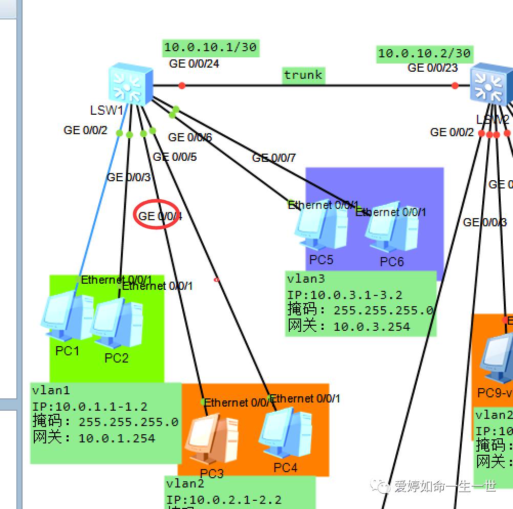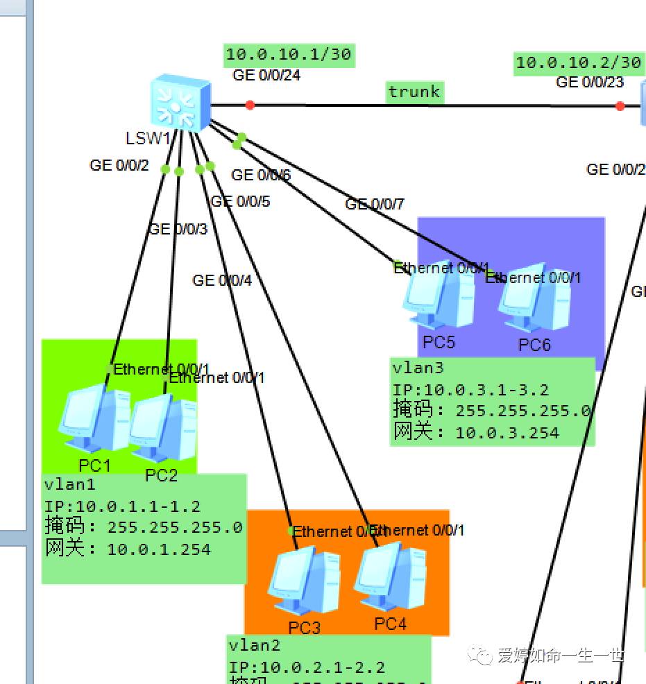 还是这样拓扑图:总的需求还是vlan2和VLAN3之间不能通讯,但可以和其他主机进行通讯: