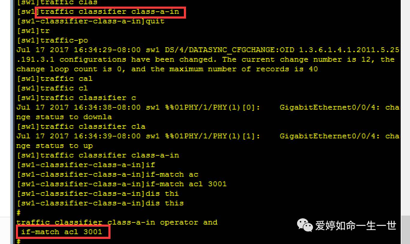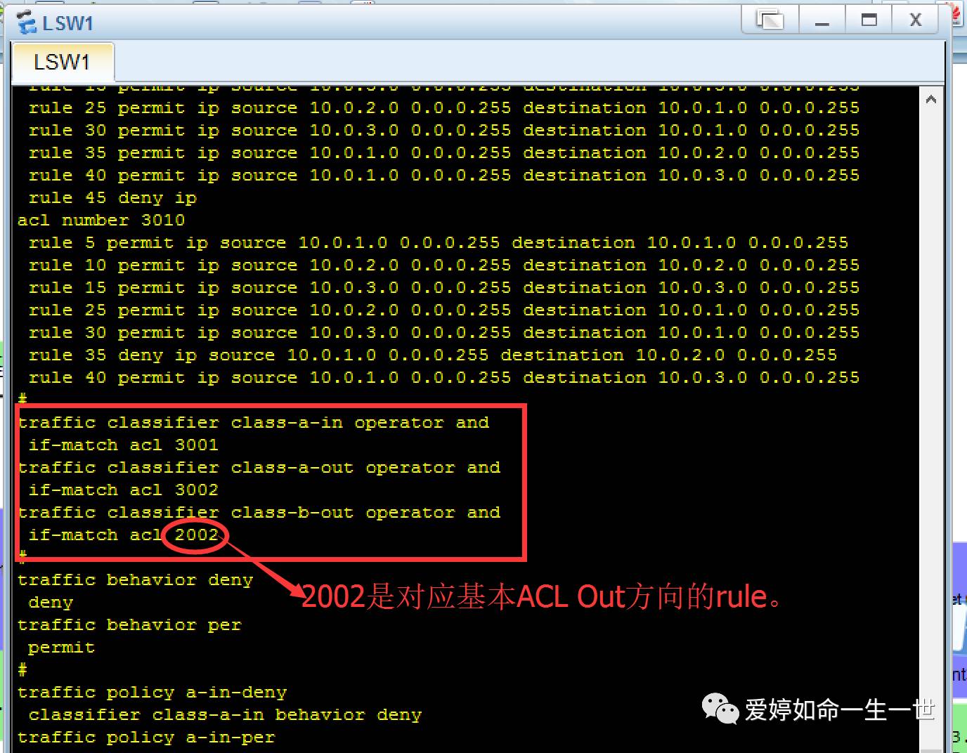 图中的流分类中定义的acl2001是最后修改成2002的,这里我就不改了。