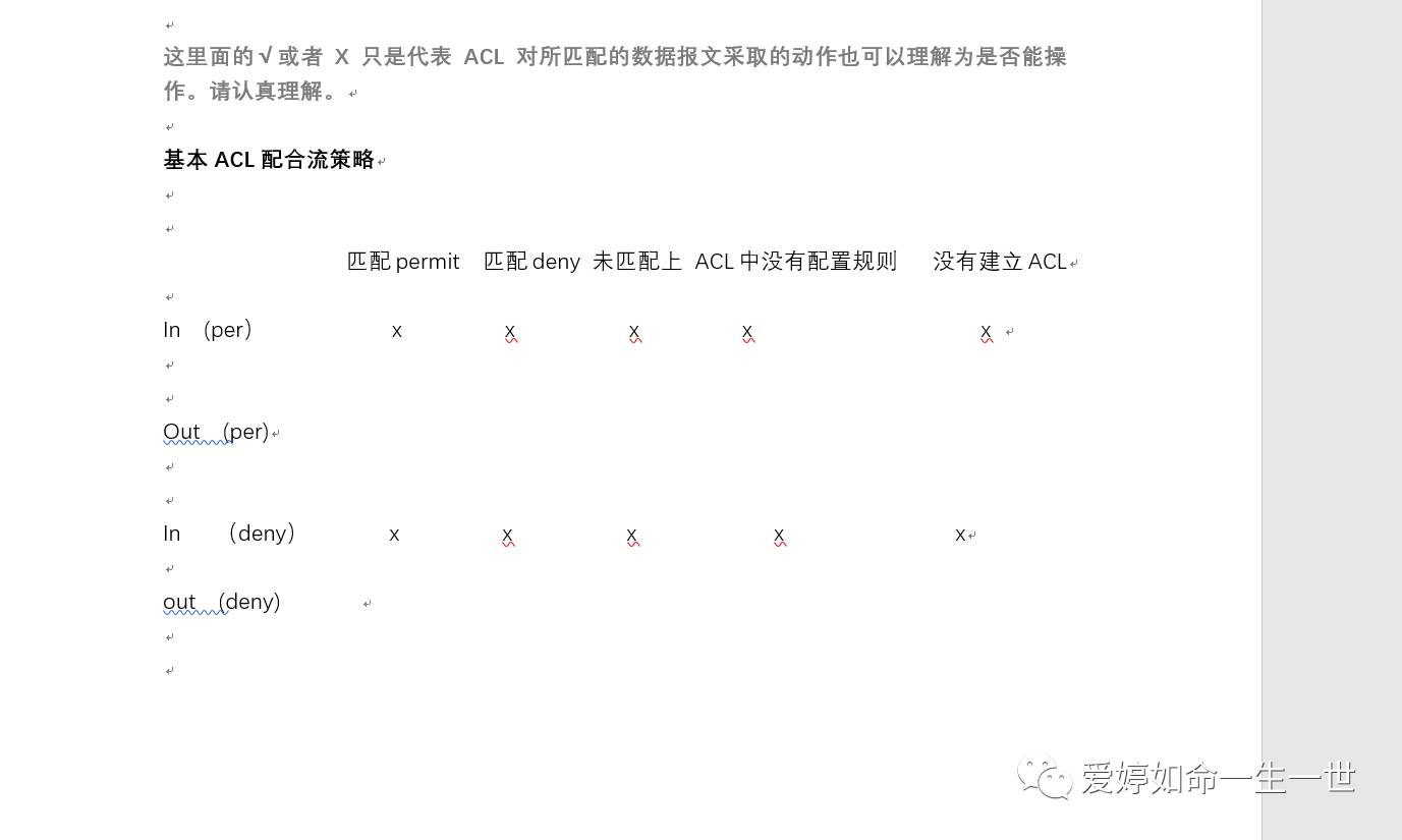 由于基本ACL在in 方向没有任何意义。所以只考虑out方向。