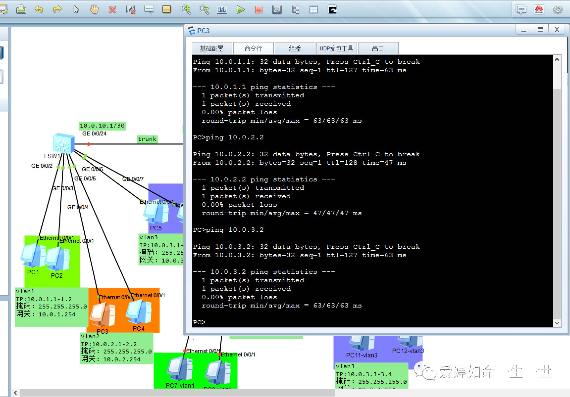 做实验之前,要在pc3上测试网络通讯是否正常,以便更准确的验证实验性。通讯正常。
