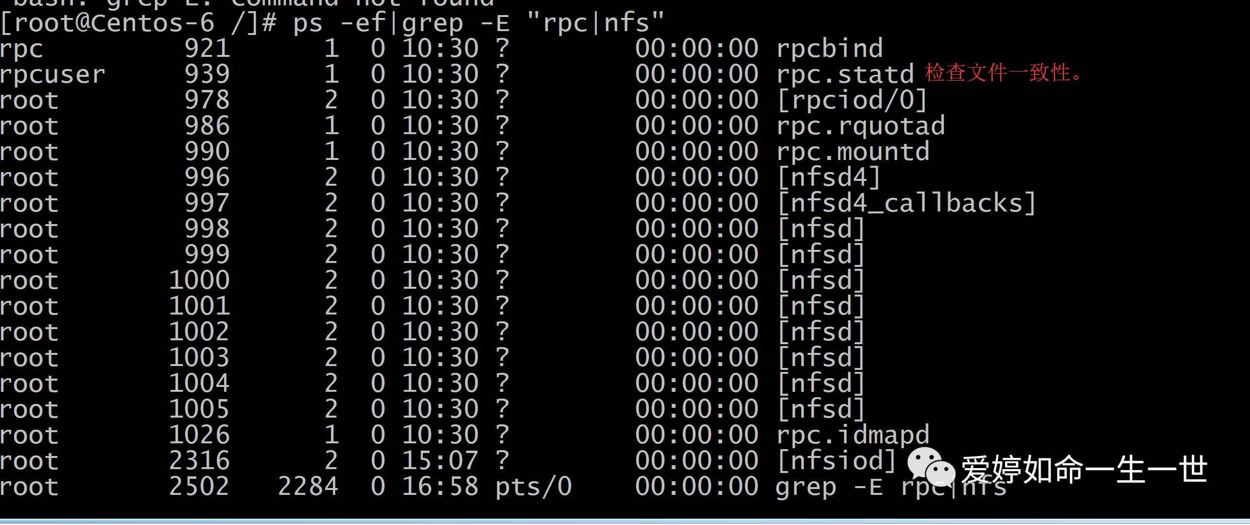 当我重启NFS服务时,我就能观察到至少有4个进程在支持NFS服务呢。