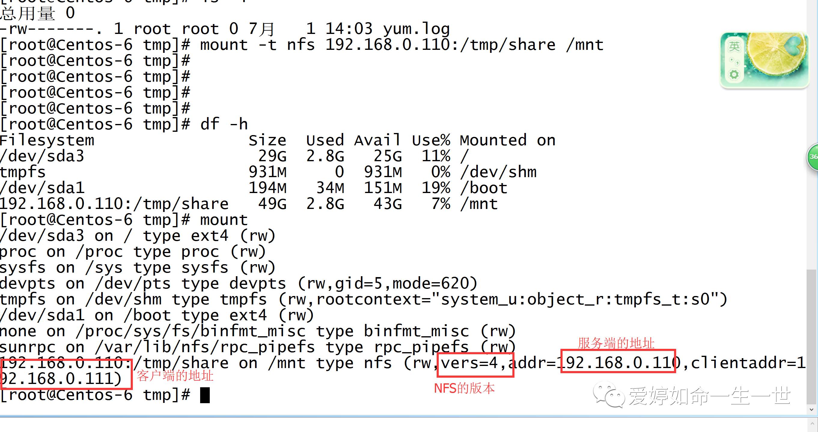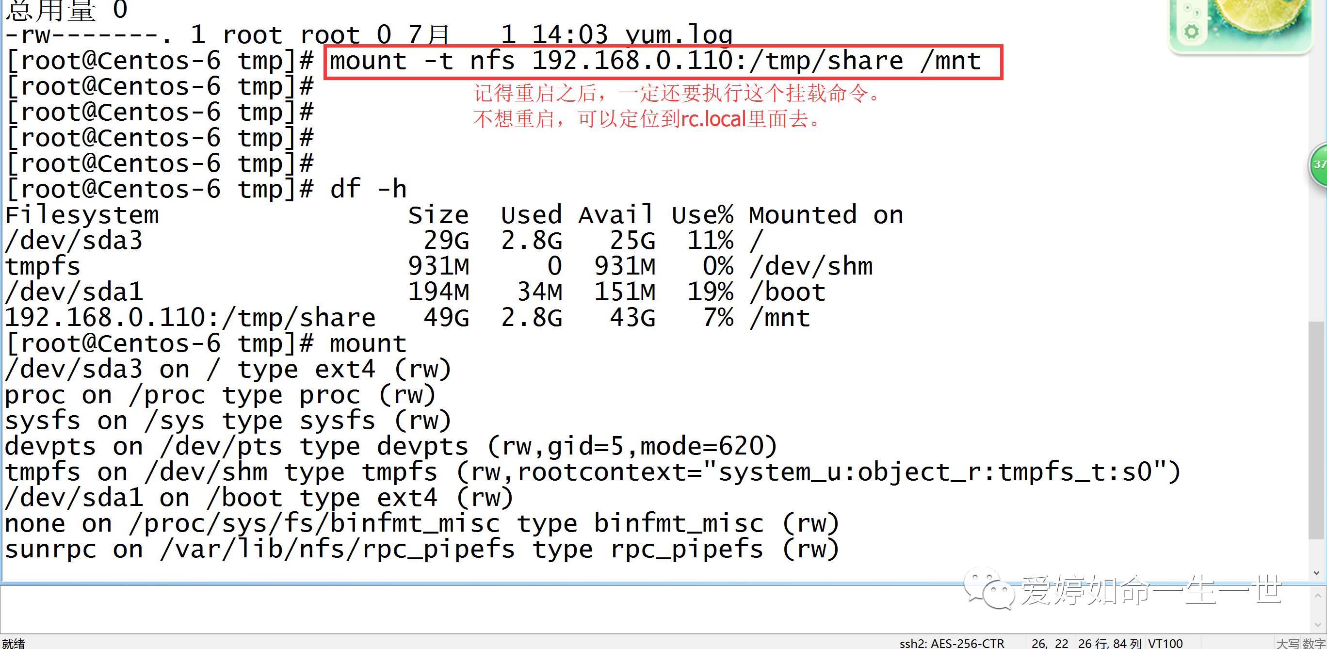 当然,我在客户端用Mount 来看还可以看到NFS的版本以及一些其他的参数情况: