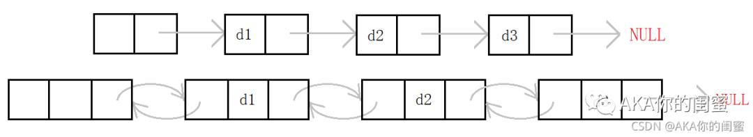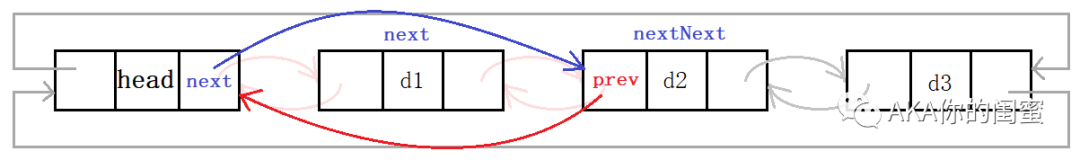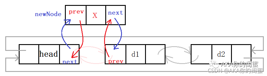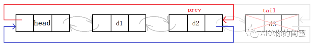 。再修改链接关系尾结点的next指向头,头的prev指向尾结点。