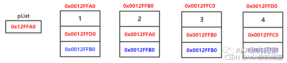 初始化时同样注意双向循环的结构。此时也可以不传递二级指针,可以利用返回值的方式传递给外部的实参plist