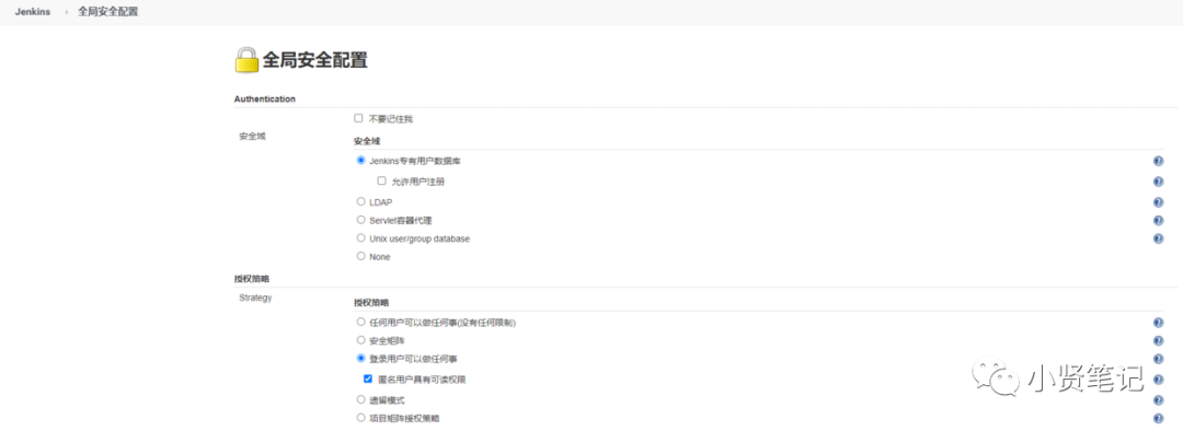 配置安全策略 勾选"匿名用户具有可读权限"