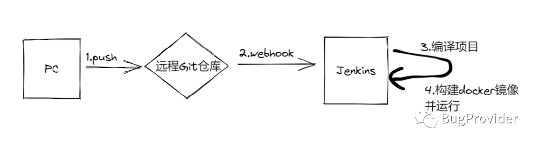 至此,开发人员提交代码到远程Git仓库的master上,Jenkins点击构建即可完成部署。但是我们希望的是Git提交后,Jenkins自动构建,不需要我们来点击,这就需要webhook