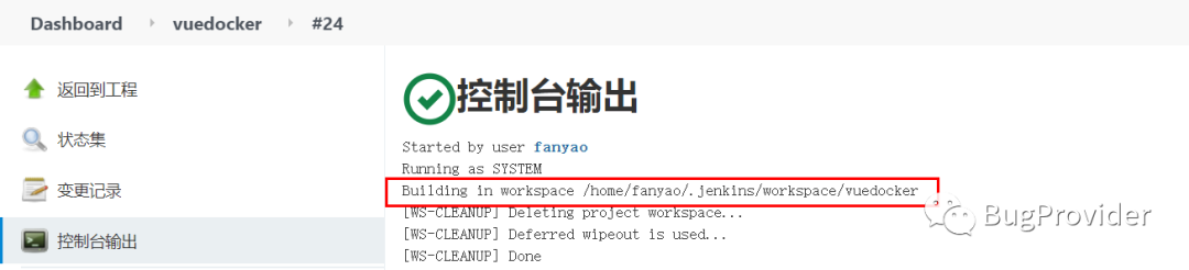 不要7.3.2的一步,直接构建程序,在控制台会输出Jenkins的工作路径
