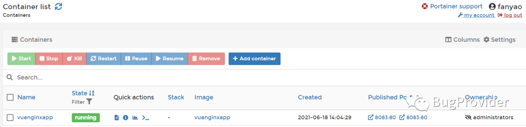 访问访问 localhost:8083,见到如下画面则成功,看到首页新增了fanyao。表明自动化构建成功。