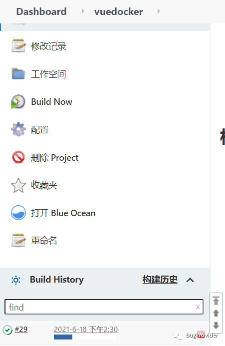 停止、删除之前运行的镜像 进入到Jenkins工作路径,用Dockerfile构建镜像 启动刚刚构建的镜像 挂载workspace中的dist到容器中nginx的/usr/share/nginx/html中 挂载workspace中的nginx.conf到容器中nginx的默认配置路径 /etc/nginx/nginx.conf 8083代理了容器里的80端口
