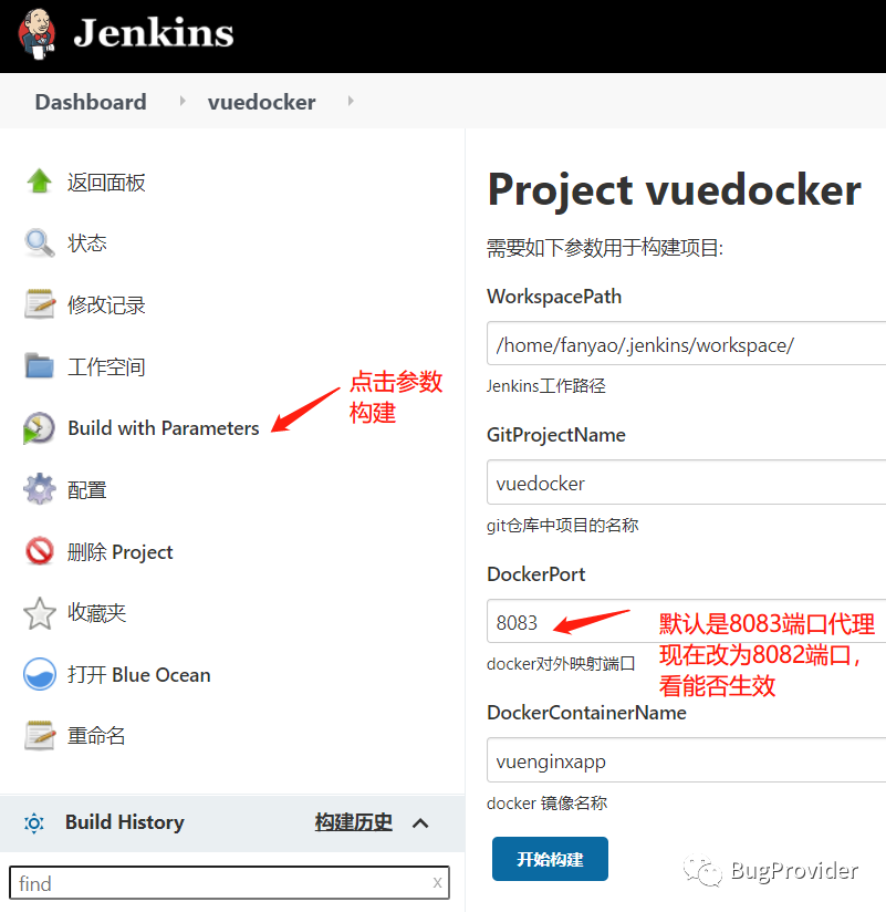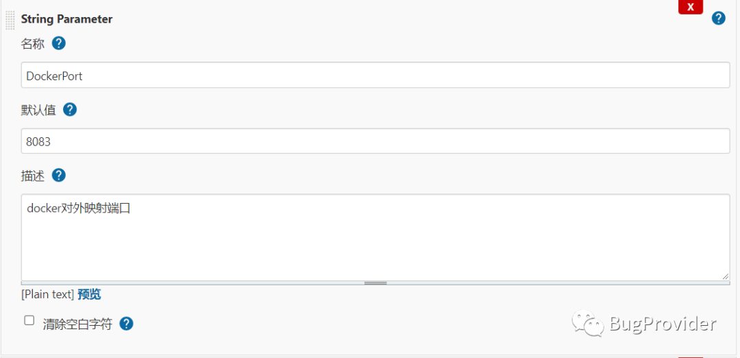 上面我们固定了docker代理端口是8083,我们想如果能构建的时候自己指定就更方便了,这个用到This project is parameterized属性