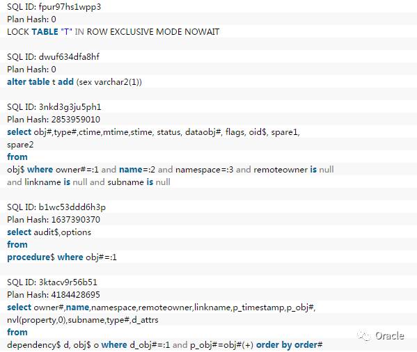 可以看出,为了一个alter table新增字段的操作,总共执行了几百次的内部SQL,大部分是通过索引方式扫描,执行的时间是100多毫秒,很快,因此感觉不到,但实际Oracle自己做了这么多后台操作,感叹他的强大,一个简单的新增字段操作,就有如此复杂的实现,但性能上基本让你感觉不到,佩服得五体投地。