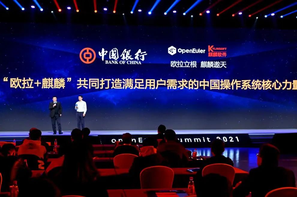 在主论坛上,麒麟软件高级副总裁、欧拉开源社区用户委员会主席高巍先生与中国银行信息科技部总工室主管级高级经理王伟南先生做了《中国银行操作系统创新实践》的联合演讲。王伟南先生指出,中国银行自2019年开始,基于麒麟操作系统进行了业务应用适配,从最初的OA、邮件等办公业务系统到行内数据库、手机银行、统一数据平台等关键业务系统,都陆续迁移至以麒麟软件操作系统产品为代表的自主平台上;目前,中国银行二十多项业务已经完成自主改造任务。在技术路线和技术栈发展上,中国银行从传统的集中式架构向自主创新的分布式架构转型,伴随基础软硬件产品稳定性、适配性、安全性的不断提升,中国银行也将逐步推动业务中台、数据湖等核心业务系统在麒麟操作系统产品上的应用。