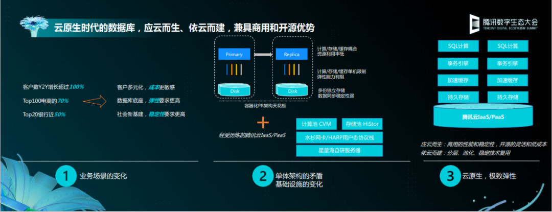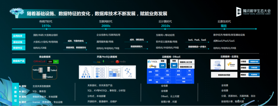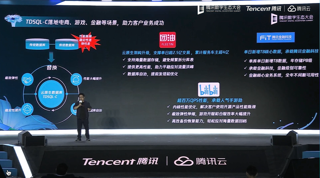 11月3/4日,以“数实融合,绽放新机”为主题,聚焦产业趋势与技术前沿,打造产业互联网顶级盛会的2021腾讯数字生态大会在武汉举办,腾讯云数据库技术负责人程彬进行了《云原生时代的数据库技术实践》的主题演讲,分别从云原生时代数据库技术何去何从,新时代下如何构建TDSQL-C数据库产品和TDSQL-C在云上实践经验等三个方面进行分享。